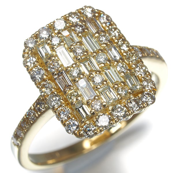 【ポイントアップ対象商品】 ダイヤ ダイヤモンド 1.00ct バゲットカット 2種カット リング K18YG 【中古】GENJ