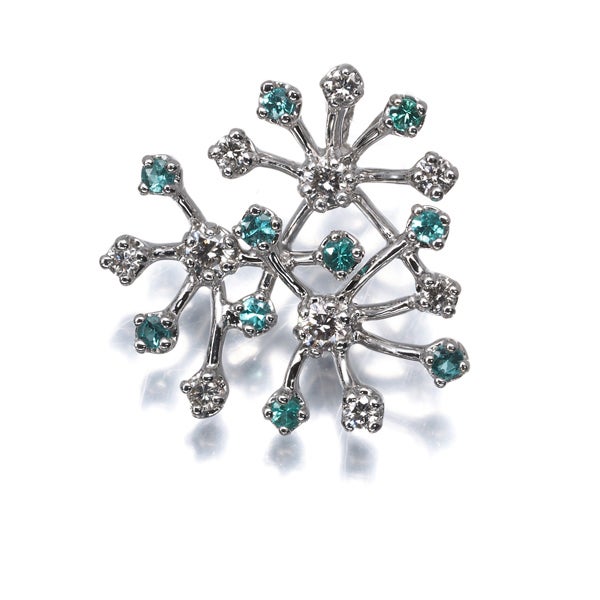 艶やかなホワイトゴールドの煌めきと共に瑞々しいダイヤモンドの輝きとクリアで色美しいネオンの煌めき放つ希少宝石パライバトルマリンを飾ったペンダント。優雅な輝きと色彩が胸元を照らしてくれることでしょうね。