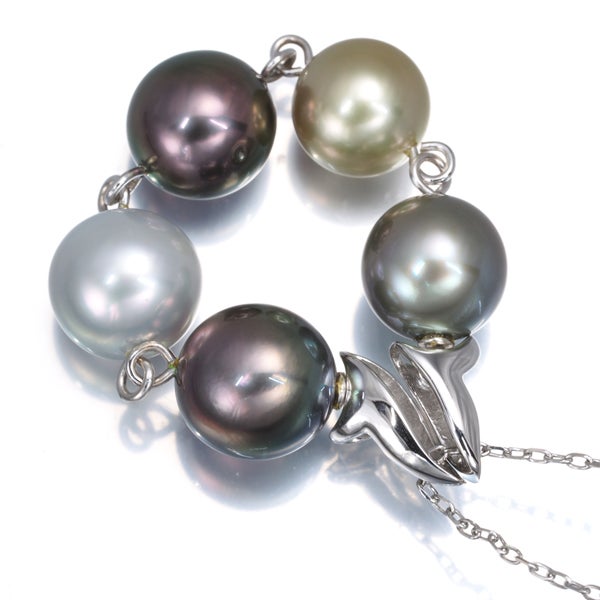 パール 真珠 パール 真珠 8.2-8.9mm マルチカラー 2WAY ネックレス K18WG 【中古】GENJ