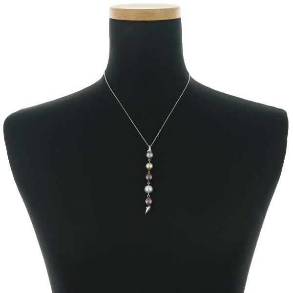 パールグレーからグリーニッシュゴールデン、華やかなピンクの干渉色を纏ったブラックと、艶やかなマルチカラーパールの艶やかさが胸元を印象的に飾ってくれる素敵なネックレス。縦向きに揺れるエレガントなニュアンスやリースのようなアレンジメントをお楽しみいただける2WAYジュエリーですよ。