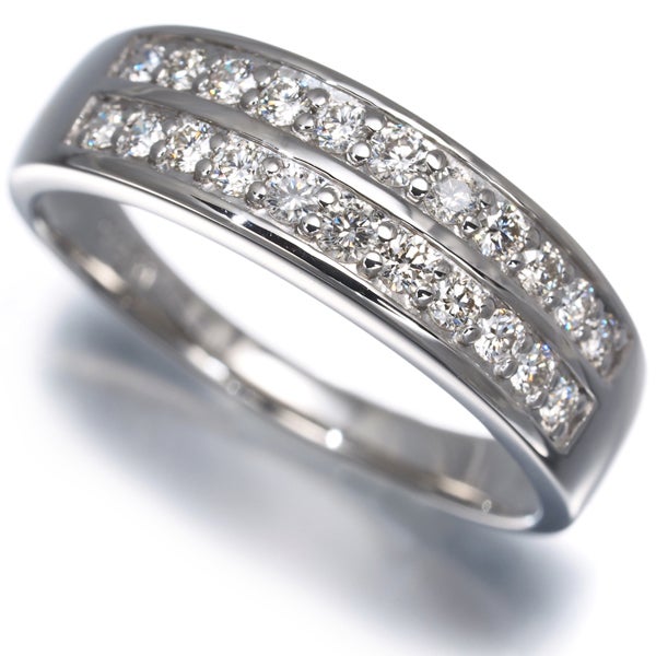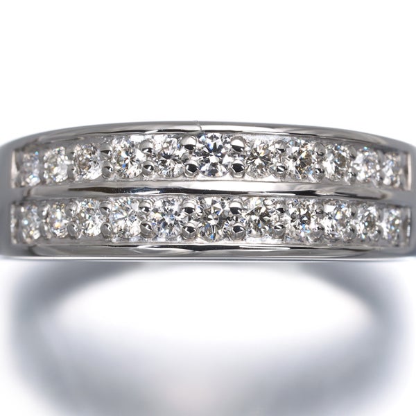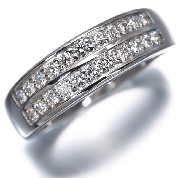 上質なメレダイヤを2列にデザインしたプラチナリング。仄かな色味を含みながらも、ダイヤならではの煌びやかな輝きを放ちます。綺麗なラインを描くプラチナの上品な光沢が指元に美しく映えるリングジュエリーです。