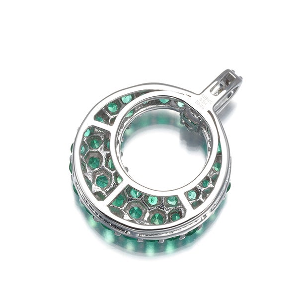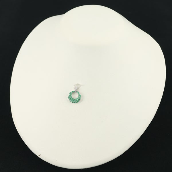 エメラルド 0.54ct ダイヤ ダイヤモンド 0.06ct サークル パヴェ ペンダントトップ K18WG 【中古】GENJ