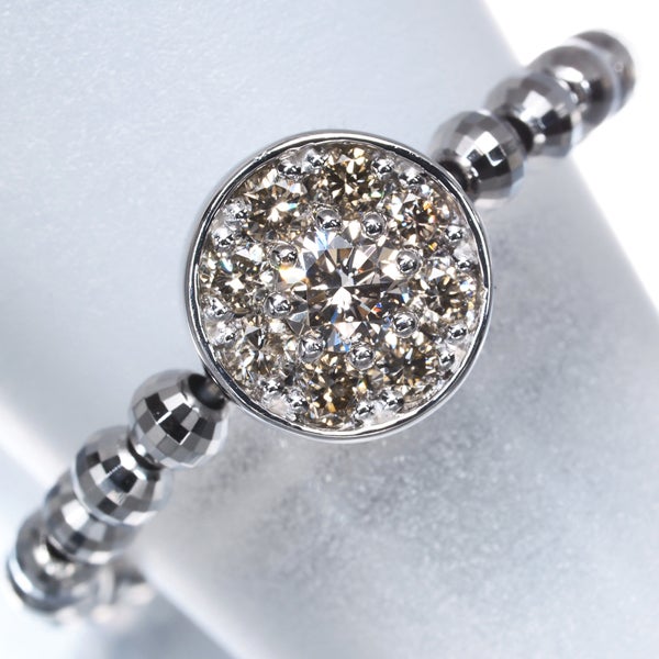 僅かな内包物しか見られない上質の透明感からテリの良い輝きを放つブラウンダイヤモンドの眩い光彩がお手元に煌めく素敵なフリーサイズリング。どうぞ様々な装いにお楽しみください。