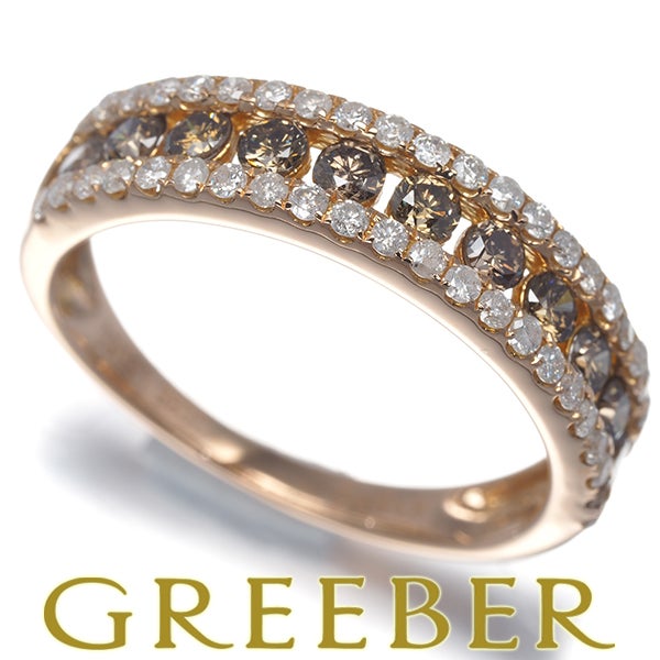 【ポイントアップ対象商品】ブラウン&クリア ダイヤ ダイヤモンド 0.60ct/0.35ct レールセッティング リング K18PG 【中古】GENJ