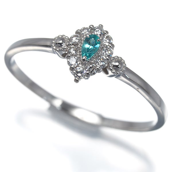 ネオンブルーが美しいパライバトルマリンを主役に、メレダイヤをあしらったドロップデザイン。細身のリングが指元を美しく引き立て、繊細な煌めきとともにエレガントでフェミニンな印象を演出してくれます。