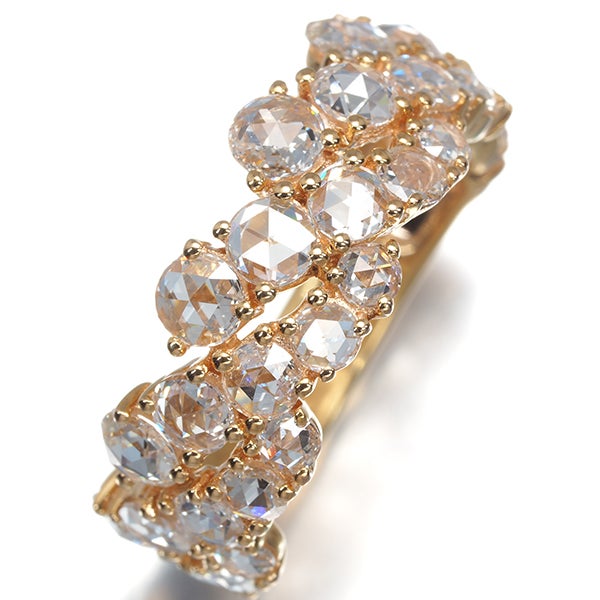 素晴らしい透明感を持った上質ダイヤモンドをローズカットならではの気品溢れる輝きにお楽しみいただける 実に美しい逸品ジュエリー。総計2ctものボリュームをウェーブを描くかのような優雅なフォルムに飾り 上品な華やかさがお手元をラグジュアリーに輝かせてくれます。