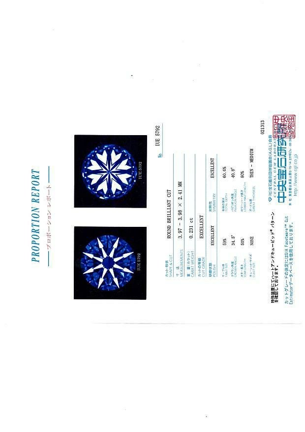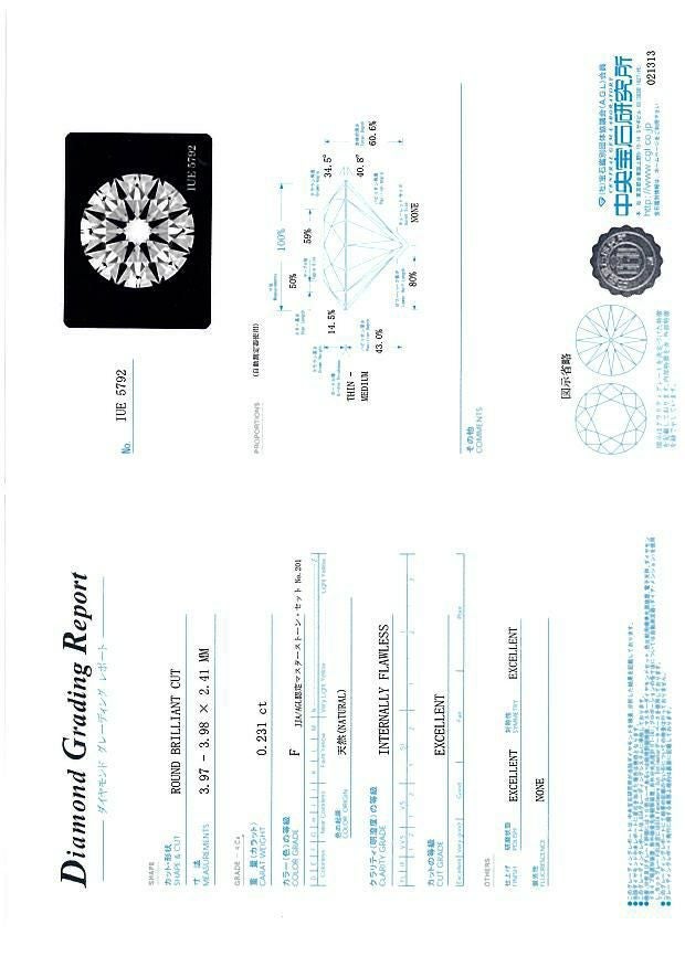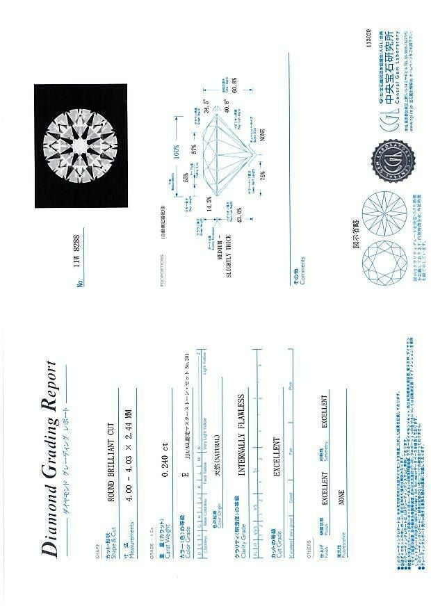 拡大画像を見る ダイヤ ダイヤモンド 0.238ct D IF 3EX H&C ルース ソーティング【0.2ct】/鑑定書【中古】【ピアス加工可】GENJ 販売価格 ¥ 110,000 税込 カートに入れる
