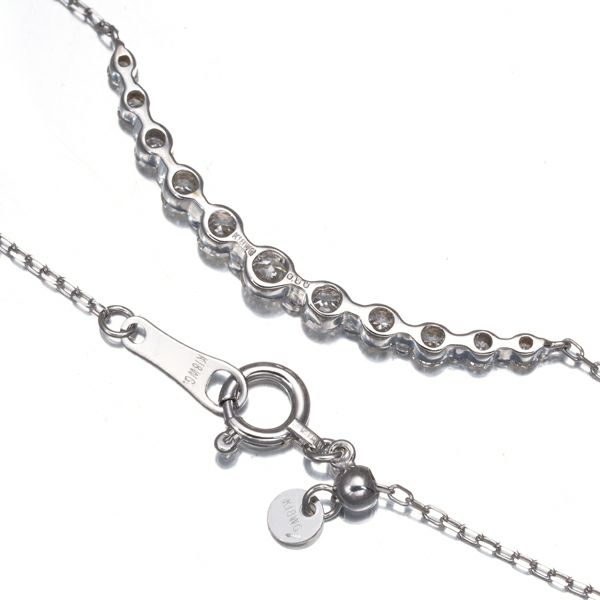 緩やかな弧を描くデザインへ瑞々しい透明感を持つダイヤモンドの輝きをグラデーションに並べたネックレス。シンプルながらも胸元にエレガンスを与えてくれるジュエリーを是非どうぞ。