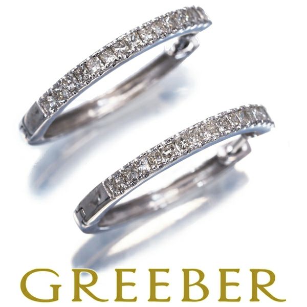 ダイヤ ダイヤモンド 0.25ct/0.25ct フープ ピアス K18WG 【中古】GENJ