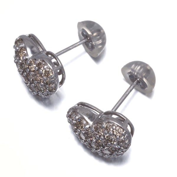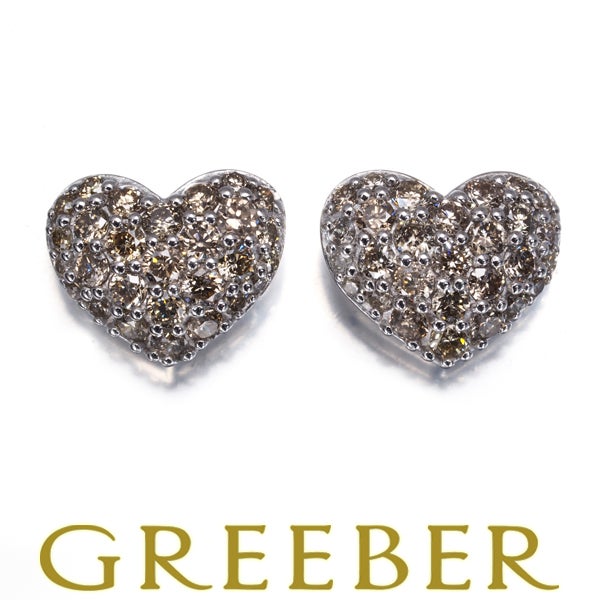 ブラウン&クリア ダイヤ ダイヤモンド 0.50ct/0.50ct ハート パヴェ ピアス K18WG 【中古】GENJ