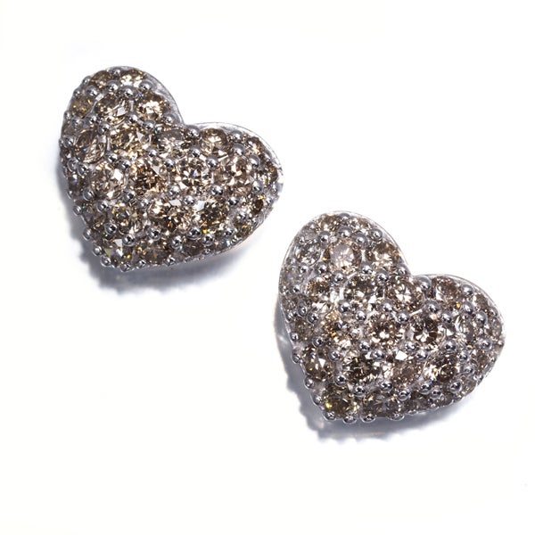 ふっくらとしたハートモチーフへ上質な透明感を持つブラウンダイヤモンドの輝きを贅沢なパヴェセッティングで演出したピアスジュエリーです。