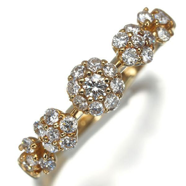 ダイヤ ダイヤモンド 0.40ct フラワー リング K18YG 【中古】GENJ 大幅値下げ品