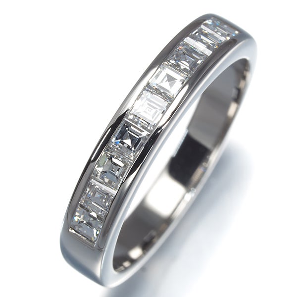 VSクラスアップと思われる上質スクエアカットの清らかな輝きをスタイリッシュに飾ったダイヤモンドリング。装いのお手元を上品に飾ってくれる美しい一品です。