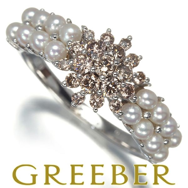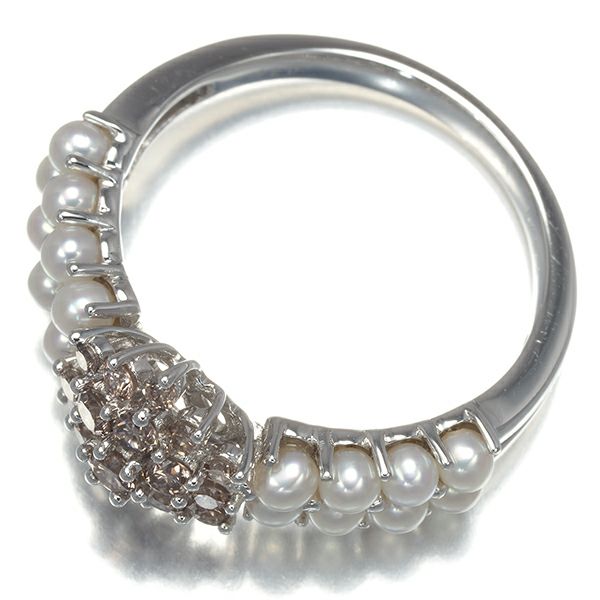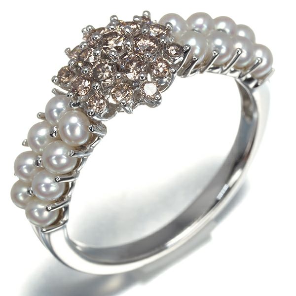 ブラウンダイヤ ダイヤモンド 0.44ct ベビーパール 真珠 2.4mm リング K18WG 【中古】GENJ