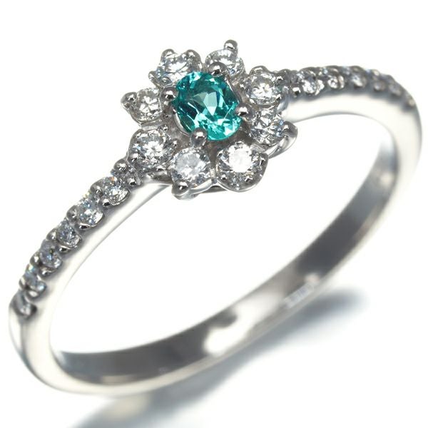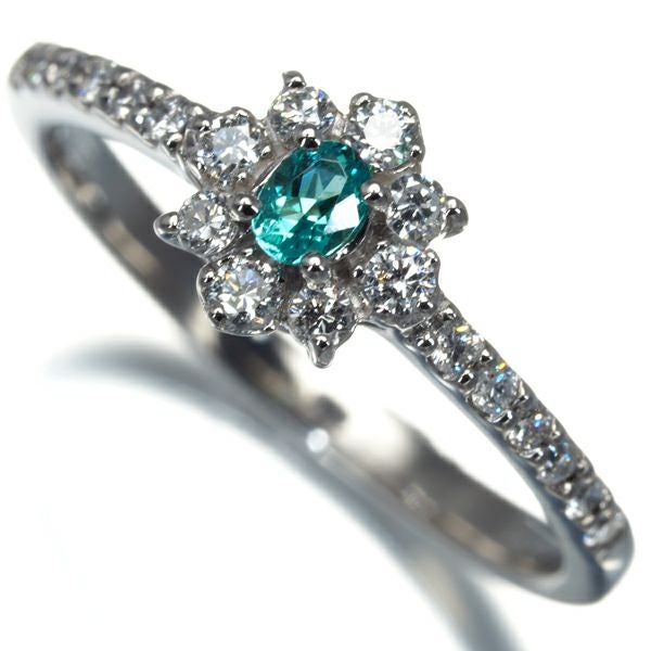 パライバトルマリン 0.07ct ダイヤ ダイヤモンド 0.20ct フラワー リング Pt900 【中古】GENJ 限界値下げ品