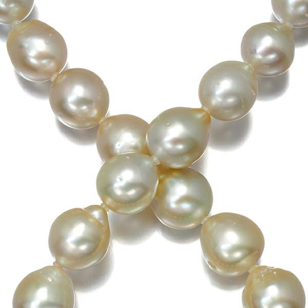 月の雫から創られたかのようなライトゴールデンカラーの輝きが 胸元を上品に包み込むパールネックレス。バロックパールならではの存在感と神秘的なお色味から放たれる艶やかなテリをお楽しみください。