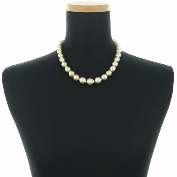 ライトゴールデン パール 真珠 9.9-12.2mm ネックレス シルバー 【中古】GENJ