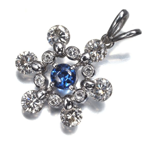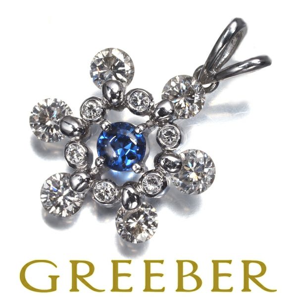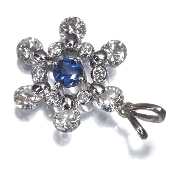 【クリスマスキャンペーン!7%対象商品】サファイア 0.25ct ダイヤ ダイヤモンド 1.02ct スノーフレーク ペンダントトップ Pt900 【中古】GENJ 大幅値下げ品