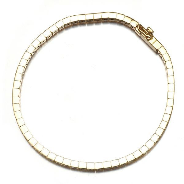 幾何学調のスクウェアデザインと共に厳選ダイヤが輝きを放つ カルティエのラニエール ダイヤモンドブレスレットです。