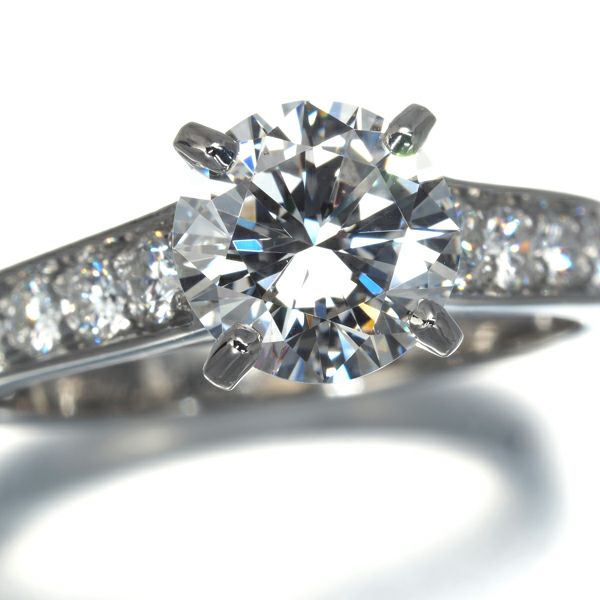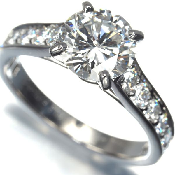 極上の透明感と眩い輝き溢れるカルティエ厳選ダイヤモンドは1.28ctもの素晴らしいサイズからラグジュアリーな存在感を演出。リングに並ぶメレダイヤの輝きと共に指元を上品に飾る高級リングです。