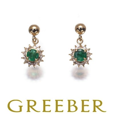 エメラルド ダイヤ ダイヤモンド 0.07ct/0.07ct クラシック ピアス K18YG 【中古】GENJ