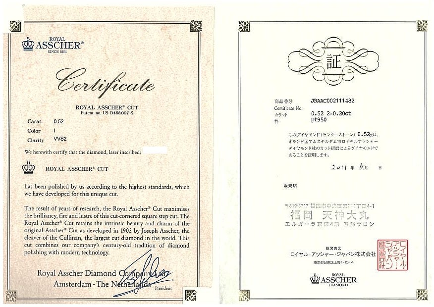 拡大画像を見る ロイヤルアッシャー リング ダイヤ ダイヤモンド 0.72ct アッシャーカット 11.5号 Pt950 箱/保×2/鑑【中古】BLJ/GENJ 販売価格 ¥ 378,000 税込 カートに入れる