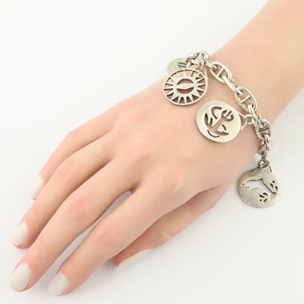 拡大画像を見る 【ポイントアップ対象商品】エルメス ブレスレット シェーヌダンクル MM 16コマ ヴィンテージ マリーナ 4チャーム シルバー 925 【中古】BLJ 販売価格 ¥ 458,000 税込 カートに入れる