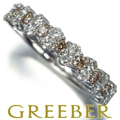 K18ホワイトゴールドに、クリアダイヤモンドとシックなブラウンダイヤモンドを交互に配した、個性的なハーフエタニティリングです。